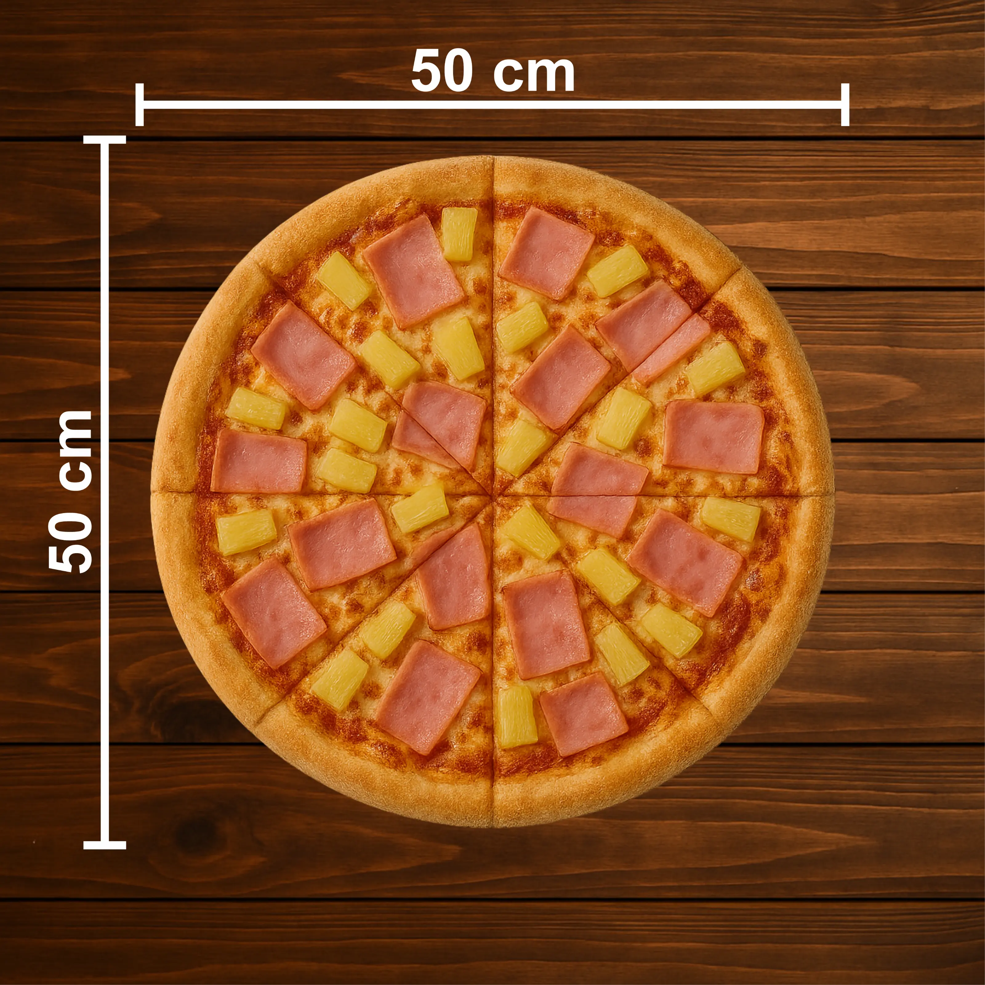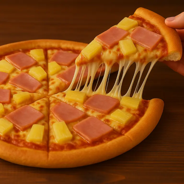 Salsa de tomate, Queso mozzarella, Jamón y Piña.