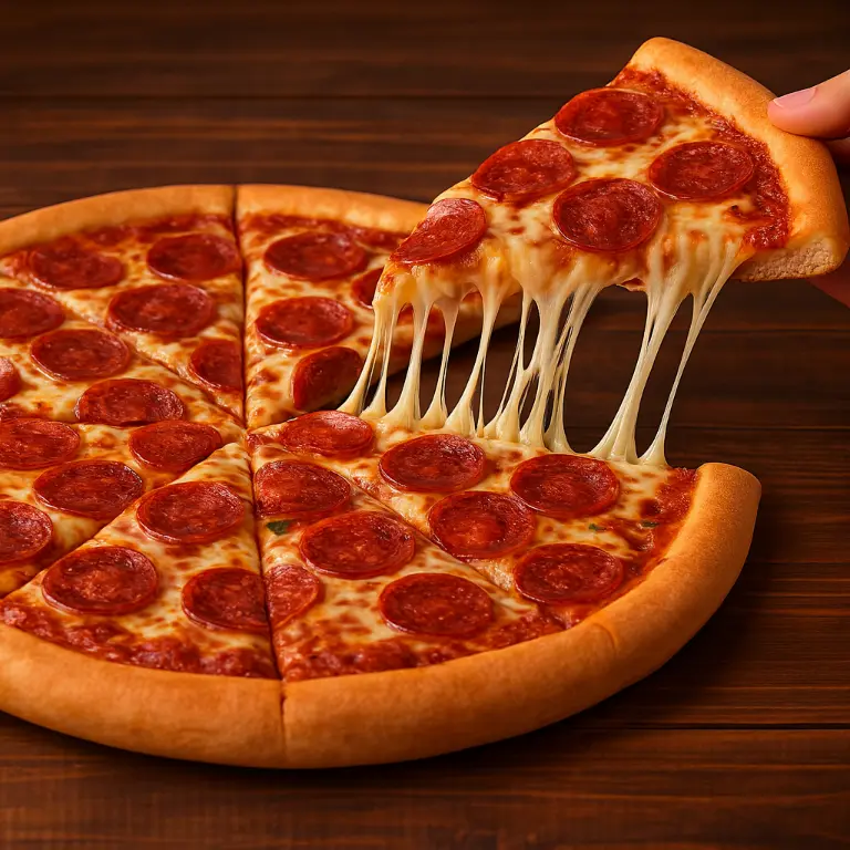 Salsa de tomate, Queso mozzarella y Pepperoni.